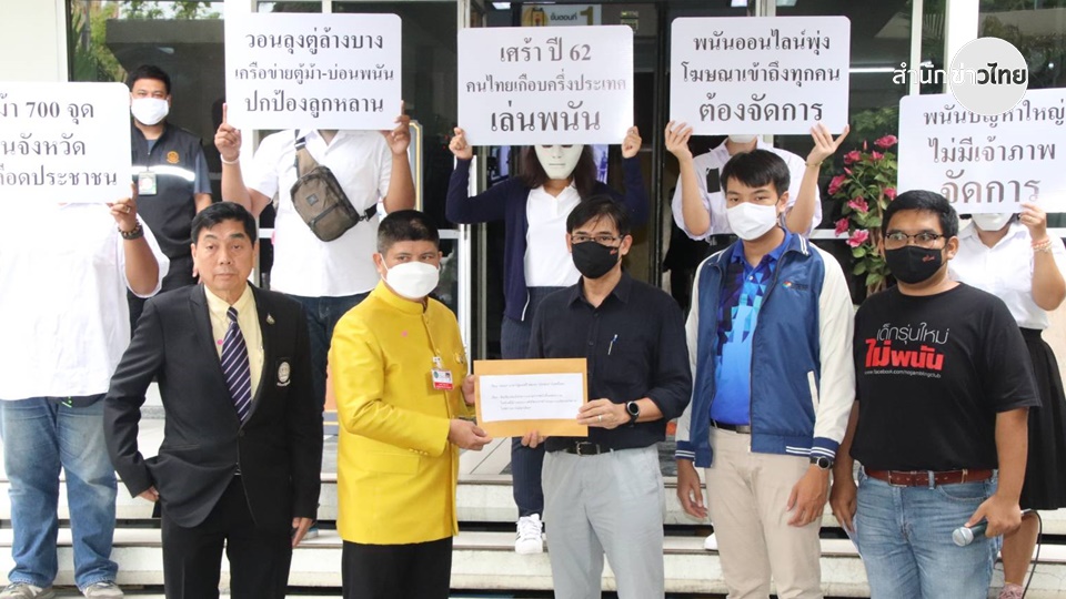 นายณัฐพงศ์ สำเภาแก้ว ผู้ประสานงานเครือข่ายเด็กรุ่นใหม่ไม่พนัน ยื่นหนังสือถึงนายกรัฐมนตรี ผ่านนายสุภรณ์ อัตถาวงศ์ ผู้ช่วยรัฐมนตรีประจำสำนักนายกรัฐมนตรี ขอให้ช่วยตรวจสอบและเอาจริงเอาจังกับธุรกิจการพนัน ที่พบว่า เพิ่มมากขึ้นโดยเฉพาะในช่วงที่มีสถานการณ์โควิด ทั้งการเปิดบ่อนการพนันและการเล่นพนันผ่านทางช่องทางออนไลน์ ที่แพร่ระบาดทั้ง Facebook LINE Twitter YouTube และเว็บไซต์ที่น่าตกใจคือพบการโฆษณาเว็บไซต์พนัน ในเว็บไซต์ของจังหวัดอุบลราชธานี ในเชิงชักชวนให้เล่นคาสิโน จึงอยากให้หน่วยงานที่เกี่ยวข้องเข้าไปตรวจสอบและชี้แจงเรื่องดังกล่าวด้วย
