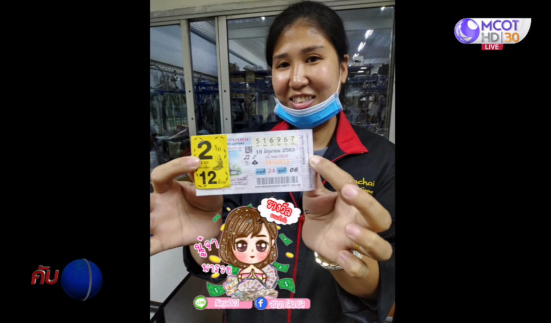 ผู้ใช้เฟซบุ๊กชื่อจริญา โสดานิล โพสต์ภาพพร้อมข้อความระบุว่า “ยินดีกับลูกค้าด้วยนะคะ ถูกรางวัลที่1 ร้านนู๋นินจา ขอบคุณลูกค้าที่น่ารักทุกคนนะคะ #รางวัลยังมีทุกงวด #ของลูกค้านะคะไม่ใช่ของแม่ค้า” ในภาพ แม่ค้าโพสต์ภาพโชว์ลอตเตอรี่ที่ถูกรางวัลที่ 1 รางวัลที่ 1 งวดประจำวันที่ 16 มิ.ย.2563 ตัวเลข 516967 ที่มีลูกค้าที่มาซื้อสลากที่ร้านตนเอง จำนวน 2 ใบ ถูกรางวัล 12 ล้านบาท