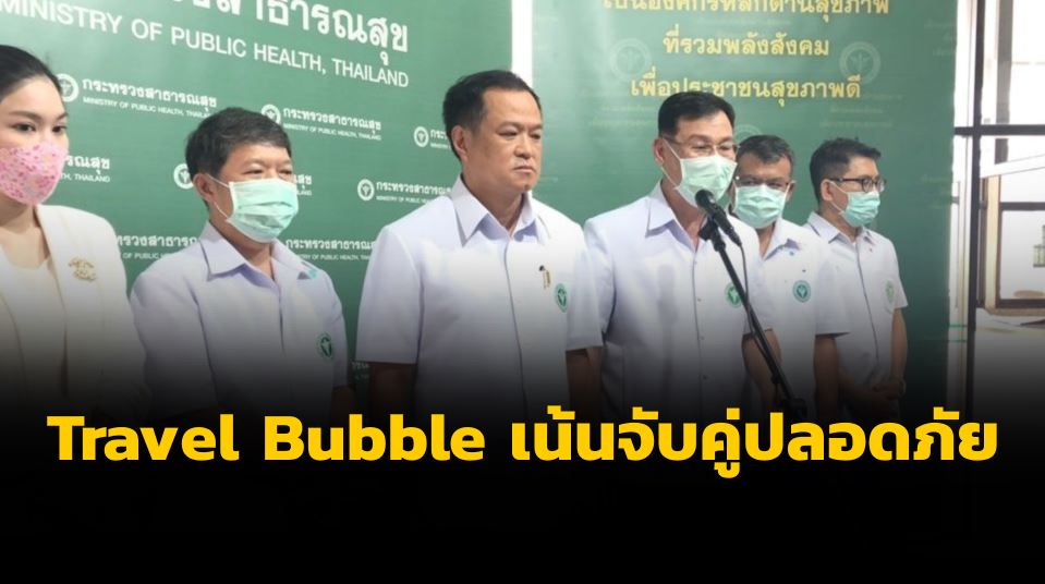 นายอนุทิน ชาญวีรกูล รองนายกรัฐมนตรีและรัฐมนตรีว่าการกระทรวงสาธารณสุข กล่าวถึงความคืบหน้าการดำเนินการจับคู่ประเทศการท่องเที่ยว หรือทราเวลบับเบิล (Travel Bubble) ว่า จะมีการหารือและเสนอต่อนายกรัฐมนตรี ให้รับทราบ ในวันศุกร์หน้า (26 มิ.ย.) เบื้องต้นได้มอบหมายให้ นพ.สุวรรณชัย วัฒนายิ่งเจริญชัย อธิบดีกรมควบคุมโรค เข้ามาดูแลวางหลักเกณฑ์ พร้อมให้ นพ.ศุภกิจ ศิริลักษณ์ รองปลัดกระทรวงสาธารณสุข ซึ่งดูแลด้านต่างประเทศ เข้ามาหารือเจรจากับประเทศต่างๆ ที่สนใจร่วมกันจับคู่ เพราะต้องเป็นการออกมาตรการที่ยินยอมพร้อมใจทุกฝ่ายหลักเกณฑ์ที่ใช้ก็ต้องร่วมกัน เบื้องต้นมีเอกอัครราชทูตหลายประเทศสนใจ อาทิ ญี่ปุ่น สวิสเซอร์แลนด์ เข้าหารือ ซึ่งกรอบที่จะพูดคุยกัน มีตั้งแต่วิธีการของแต่ละประเทศ การคัดกรองนักเดินทาง ทำอย่างไรถึงจะมั่นใจเรื่องความปลอดภัย