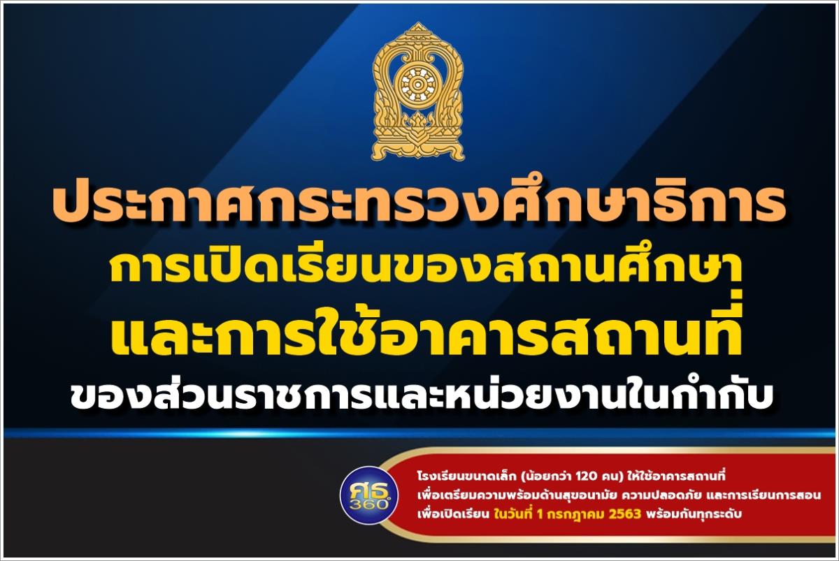 การใช้อาคารสถานที่เพื่อจัดการเรียนการสอนของโรงเรียนที่มีนักเรียนไม่เกิน 120 คน ได้ตั้งแต่วันที่ 15 มิถุนายน 2563