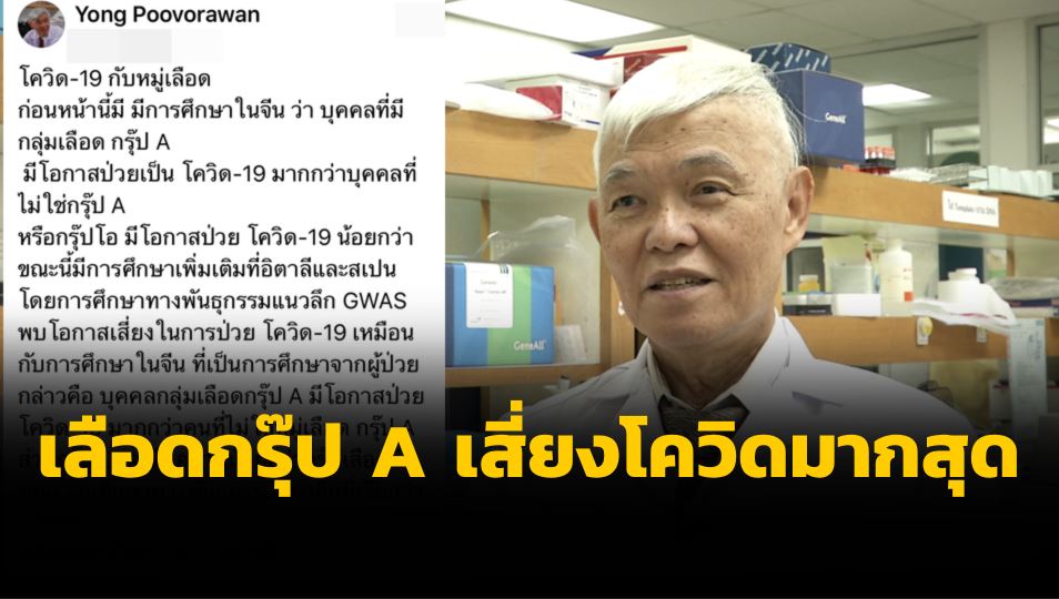 ศ.นพ.ยง ภู่วรวรรณ หัวหน้าศูนย์เชี่ยวชาญเฉพาะทางด้านไวรัสวิทยาคลินิก ภาควิชากุมารเวชศาสตร์ คณะแพทยศาสตร์ จุฬาลงกรณ์มหาวิทยาลัย โพสต์เฟซบุ๊ก Yong Poovorawan เรื่อง โควิด-19 กับหมู่เลือด โดยระบุว่า ก่อนหน้านี้มีการศึกษาในจีนว่าบุคคลที่มีกลุ่มเลือดกรุ๊ป A มีโอกาสป่วยเป็น โควิด-19 มากกว่าบุคคลที่ไม่ใช่กรุ๊ป A หรือกรุ๊ปโอ มีโอกาสป่วยโควิด-19 น้อยกว่า