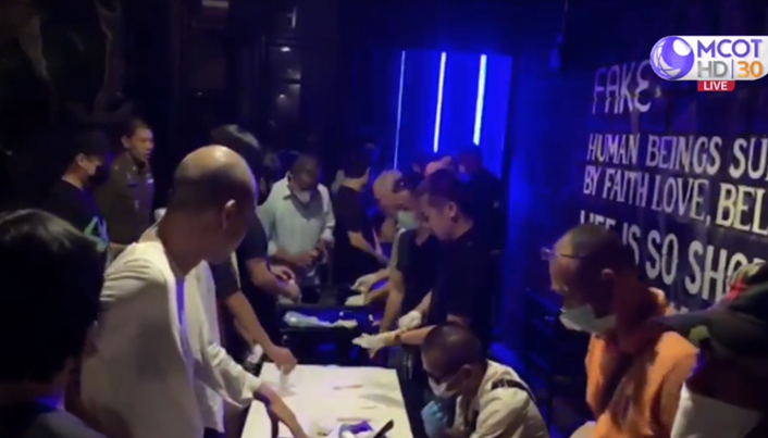 Pol Col Kritsana Pattanacharoen, deputy police spokesman said that a combined team of police raided Fake pub on Pradit Manutham Road in Bueng Kum district and arrested 111 people (64 men and 47 women) including four young people.
