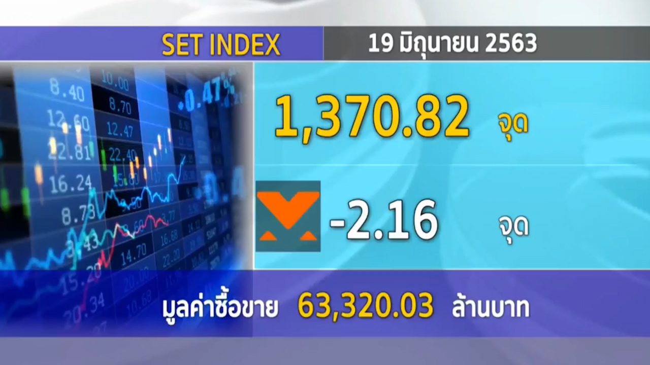 ตลาดหลักทรัพย์แห่งประเทศไทย 19 มิ.ย.- ตลาดหลักทรัพย์ ปิดวันนี้ที่ระดับ 1,370.82 จุด ลดลง 2.16 จุด (-0.16%) มูลค่าการซื้อขาย 63,320.03 ล้านบาท.-สำนักข่าวไทย