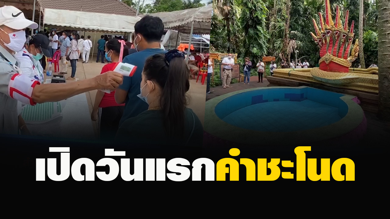 บรรยากาศเปิดคำชะโนดวันแรกเป็นไปด้วยความคึกคัก มีนักท่องเที่ยวและผู้แสวงบุญ ทั้งที่ลงทะเบียนเข้าเกาะคำชะโนด และผู้ที่ไม่ได้ลงทะเบียนทยอยเดินทางมากราบสักการะเจ้าปู่ศรีสุทโธและเจ้าย่าศรีปทุมมาที่วังนาคินทร์คำชะโนด ตั้งแต่ 09.00 น. โดยต้องเข้าคัดกรองตามจุดที่คณะกรรมการบริหารคำชะโนดกำหนดไว้ก่อน เพื่อตรวจวัดไข้ พร้อมติดสติกเกอร์แสดงสัญลักษณ์ว่าผ่านการคัดกรองตรวจวัดไข้เรียบร้อย รวมทั้งทุกคนต้องสวมหน้ากากอนามัย ผู้ที่ได้ลงทะเบียนล่วงหน้าชุดแรกมี 50 คน ต้องเดินแถวเรียง 1 ตั้งแต่จุดคัดกรองมาจนถึงบริเวณสะพานพญานาคก่อนที่จะเข้าไปในตัวเกาะคำชะโนด ที่มีเจ้าหน้าที่คอยแนะนำและจัดระเบียบก่อนจะเข้าไป และไม่ให้สัมผัสราวสะพานพญานาค โดยให้พนมมืออธิษฐานขอพรแทน รวมทั้งยืนตามจุดที่ทำเครื่องหมายกำหนดไว้ กำหนดให้ใช้เวลาสักการะจุดต่างๆ จุดละไม่เกิน 5 นาที.-สำนักข่าวไทย
