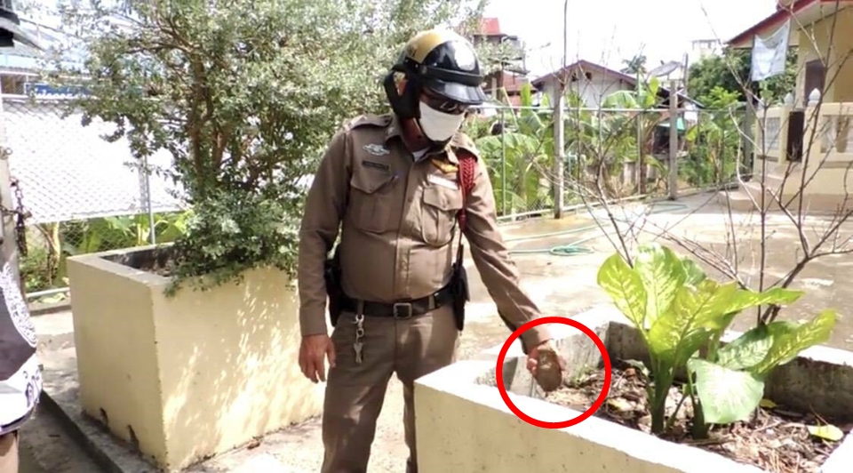 จากการสอบถามนางประไพ พึ่งทองหล่อ อายุ 57 ปี ชาวบ้านที่มาทำบุญที่วัด เปิดเผยว่า มาทำบุญตอนเช้า เห็นวัตถุวางอยู่ตรงขอบกระถางต้นไม้ตรงนี้มาแล้ว 3 วัน แต่วันนี้ก็ยังเห็นอยู่ จึงเรียกชาวบ้านมาช่วยดู ถึงรู้ว่าเป็นระเบิด ทำให้ตกใจ จึงรีบแจ้งตำรวจมาตรวจสอบ