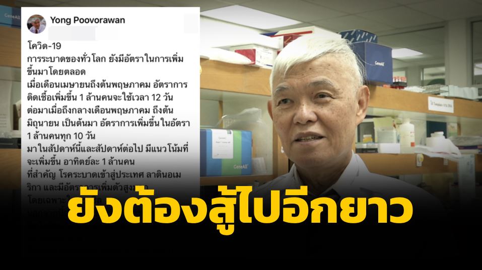 ศ.นพ.ยง ภู่วรวรรณ หัวหน้าศูนย์เชี่ยวชาญเฉพาะทางด้านไวรัสวิทยาคลินิก ภาควิชากุมารเวชศาสตร์ คณะแพทยศาสตร์ จุฬาลงกรณ์มหาวิทยาลัย โพสต์เฟซบุ๊ก Yong Poovorawan วันนี้ (22 มิ.ย.) ว่า โควิด-19 การระบาดของทั่วโลก ยังมีอัตราในการเพิ่มขึ้นมาโดยตลอด