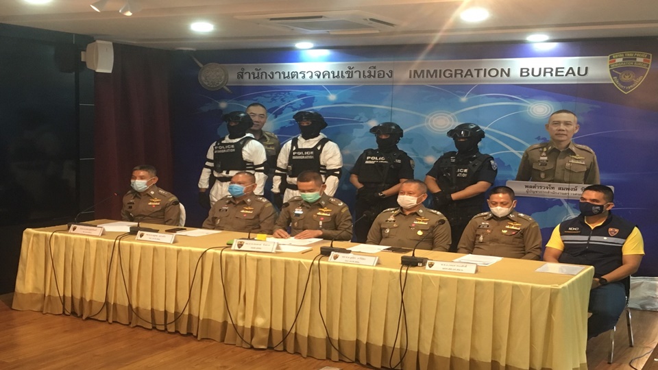 พลตำรวจโทสมพงษ์ ชิงดวง ผู้บัญชาการสำนักงานตรวจคนเข้าเมือง แถลงผลการจับกุมของชุดปฏิบัติการในสังกัด