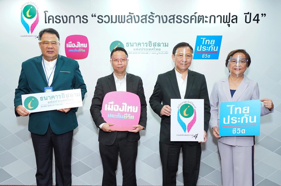 ธนาคารอิสลามแห่งประเทศไทย (ไอแบงก์) ร่วมกับ 2 พันธมิตรธุรกิจประกัน เดินหน้าเปิดโครงการรวมพลังสร้างสรรค์ตะกาฟุลต่อเนื่องเป็นปีที่ 4 เพื่อส่งมอบผลิตภัณฑ์ประกันภัยตะกาฟุลหลากหลายรูปแบบที่สอดรับกับความต้องการของพี่น้องมุสลิมและลูกค้าทั่วไป ทั้งด้านการออมเงิน การสร้างความอุ่นใจในการคุ้มครองชีวิต และความมั่นคงในวัยเกษียณ โดยมีนายวุฒิชัย สุระรัตน์ชัย กรรมการและผู้จัดการธนาคาร และนายวิสุทธ์ บริบูรณ์ รองกรรมการผู้จัดการ ผู้บริหารสายงานธุรกิจรายย่อย และปฏิบัติหน้าที่ผู้ช่วยกรรมการผู้จัดการ ผู้บริหารสายงานธุรกิจ ธนาคารอิสลามแห่งประเทศไทย พร้อมด้วยนายไพฑูรย์ ไกรอมร รองกรรมการผู้จัดการ บริษัท เมืองไทยประกันชีวิต จำกัด (มหาชน) และนางฉวีวรรณ ปิยรัตนเสถียร Head of Government Bancassurance บริษัท ไทยประกันชีวิต จำกัด (มหาชน) ร่วมพิธีเปิดโครงการเมื่อวันที่23 มิถุนายน 2563 ณ ห้องประชุมใหญ่ ชั้น 23 สำนักงานใหญ่ ธนาคารอิสลามแห่งประเทศไทย