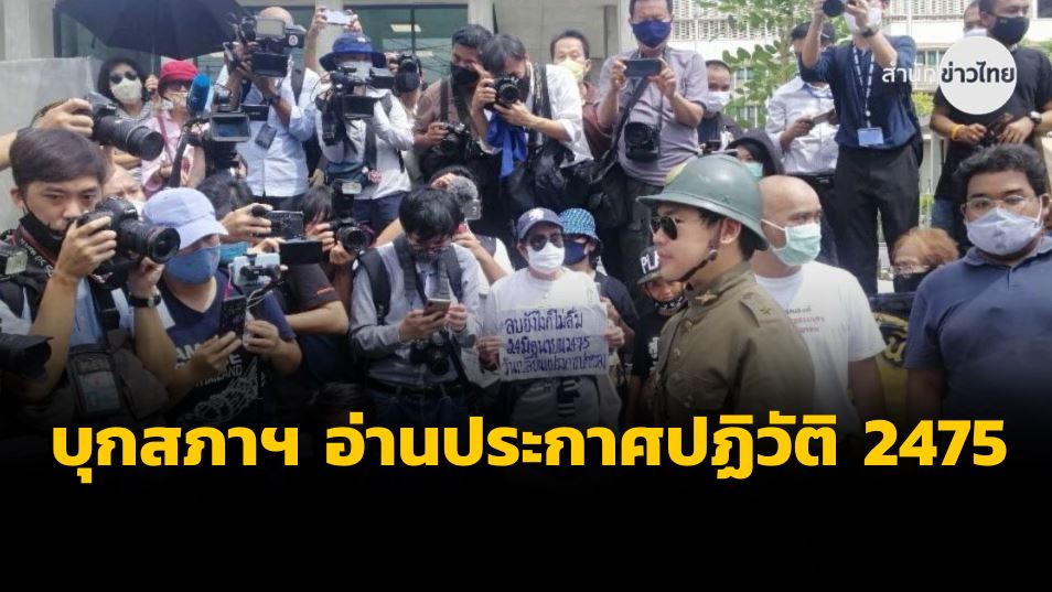 รัฐสภา 24 มิ.ย.-คณะรณรงค์เพื่อรัฐธรรมนูญฉบับประชาชน (ครช.) บุกสภาฯ นำพานรัฐธรรมนูญและหมุดคณะราษฎรจำลอง มาแสดงสัญลักษณ์ เนื่องในวันเปลี่ยนแปลงการปกครอง 24 มิถุนายน 2475 พร้อมอ่านประกาศคณะราษฎร