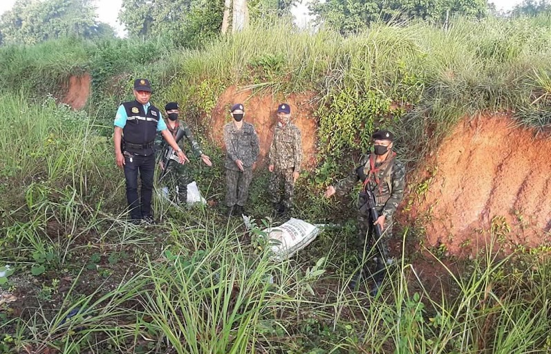 นราธิวาส 24 มิ.ย.- ทหาร-ฝ่ายปกครองสนธิกำลัง ลาดตระเวนเข้มยึดใบกระท่อม 260 กก. ใส่กระสอบ 9 ใบ ซุกพงหญ้าชายแดนสงขลา