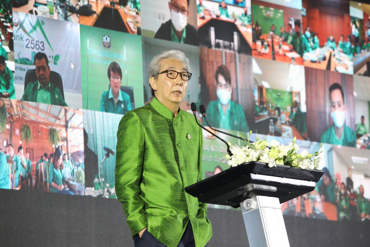 นายสมคิด จาตุศรีพิทักษ์ รองนายกรัฐมนตรี มอบนโยบายให้กับผู้บริหารธนาคารเพื่อการเกษตรและสหกรณ์การเกษตร(ธ.ก.ส.)พร้อมกันทั่วประเทศ