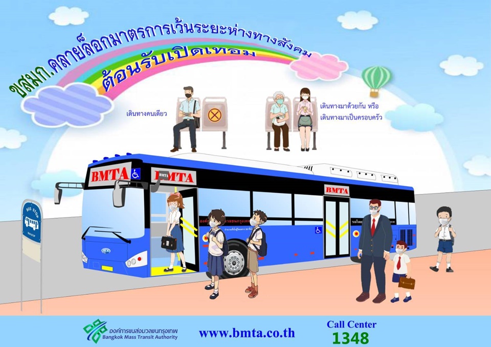 นายสุระชัย เอี่ยมวชิรสกุล ผู้อำนวยการองค์การขนส่งมวลชนกรุงเทพ (ขสมก.) เปิดเผยว่า ภายหลังรัฐบาลเตรียมผ่อนคลายมาตรการสกัดกั้นการแพร่ระบาดของโควิด – 19 ระยะที่ 5 แล้ว รวมทั้งตั้งแต่วันที่ 1 กรกฎาคม 2563 ซึ่งตรงกับวันเปิดภาคเรียนที่ 1 ปีการศึกษา 2563 โดยจะมีนักเรียน นิสิต นักศึกษา ผู้ปกครอง และประชาชนทั่วไป ใช้บริการระบบขนส่งสาธารณะเพิ่มขึ้น ประกอบกับกระทรวงคมนาคมมีนโยบายให้หน่วยงานในสังกัดเตรียมผ่อนคลายมาตรการเว้นระยะห่างทางสังคม (Social Distancing) ในระบบขนส่งสาธารณะ เพื่อให้สามารถรองรับผู้ใช้บริการเพิ่มขึ้นเป็น 70 % โดยอนุญาตให้ผู้ใช้บริการที่เดินทางมาด้วยกัน หรือเดินทางมาเป็นครอบครัวสามารถนั่งติดกันได้บนเบาะที่นั่งที่กำหนด ตั้งแต่วันที่ 1 กรกฎาคม 2563 เป็นต้นไป