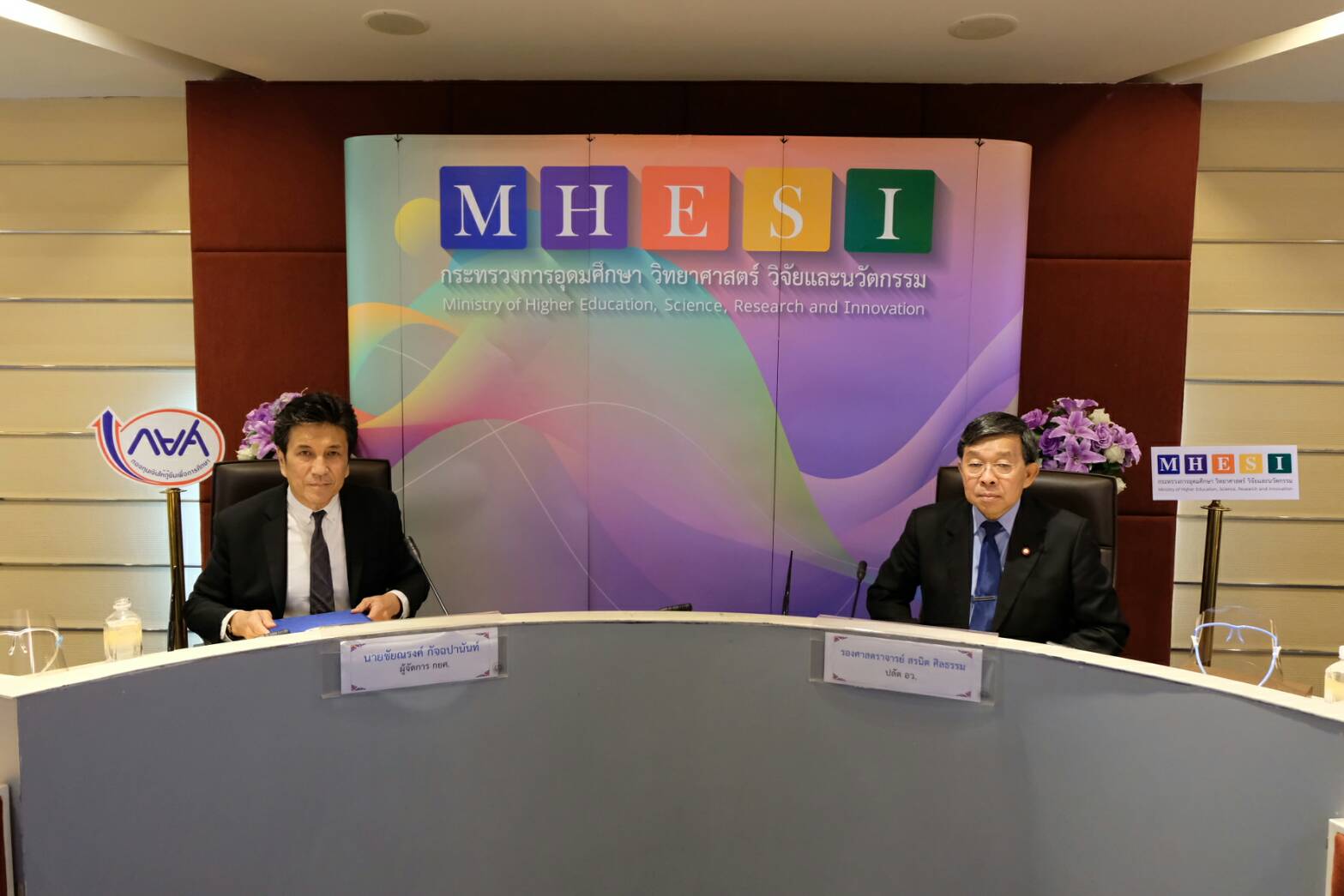 กระทรวงการอุดมศึกษา วิทยาศาสตร์ วิจัยและนวัตกรรม (อว.) และกองทุนเงินให้กู้ยืมเพื่อการศึกษา (กยศ.) จัดพิธีร่วมลงนามบันทึกข้อตกลงความร่วมมือว่าด้วยการขอข้อมูลหรือการเปิดเผยข้อมูลการกู้ยืมเงิน เพื่อขยายโอกาสทางการศึกษาให้แก่นักเรียน นักศึกษาผู้กู้ยืมอย่างทั่วถึง โดย รองศาสตราจารย์ สรนิต ศิลธรรม ปลัดกระทรวงการอุดมศึกษา วิทยาศาสตร์ วิจัย และนวัตกรรม และนายชัยณรงค์ กัจฉปานันท์ ผู้จัดการกองทุนเงินให้กู้ยืมเพื่อการศึกษา ร่วมลงนามบันทึกข้อตกลงฯ เมื่อวันศุกร์ที่ 26 มิถุนายน 2563 ณ สำนักงานปลัดกระทรวงการอุดมศึกษา วิทยาศาสตร์ วิจัยและนวัตกรรม ถนนศรีอยุธยา