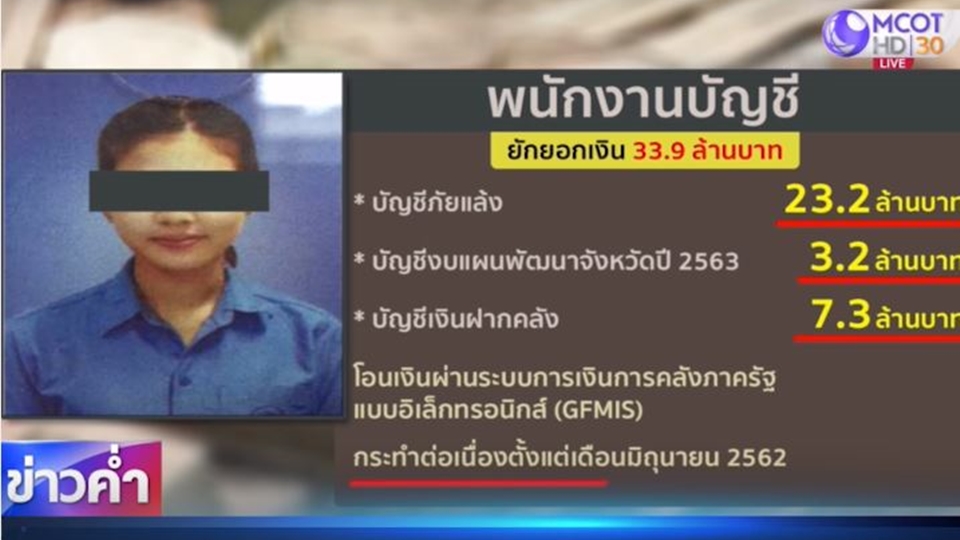 ความคืบหน้าคดีพนักงานวิชาการการเงินและบัญชี สำนักงานจังหวัดประจวบคีรีขันธ์ ยักยอกเงินงบประมาณของทางราชการ รวม 33.9 ล้านบาท ถูกนำตัวฝากขังเรือนจำจังหวัดประจวบคีรีขันธ์ หลังตำรวจดำเนินคดีในข้อหายักยอกทรัพย์ ปลอมเอกสารทางราชการ และใช้เอกสารปลอม