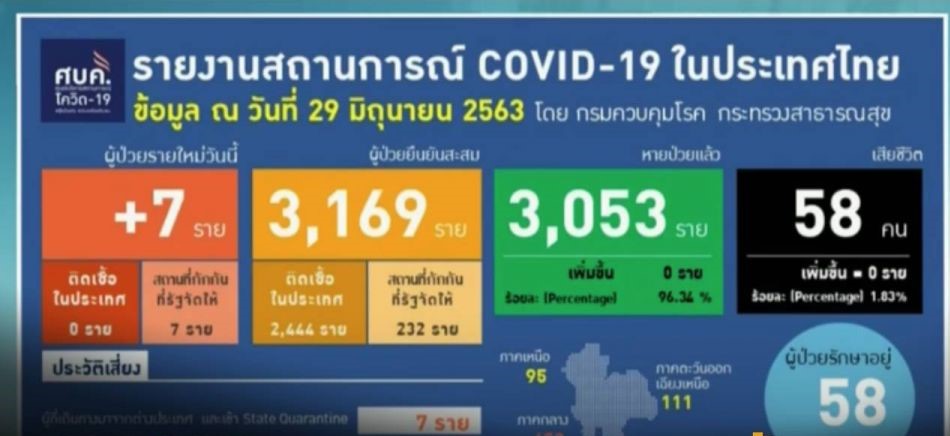 BANGKOK, June 29 (TNA) – Thailand on Monday reported seven new cases of Covid-19, all of which were imported, raising the total cases to 3,169.
