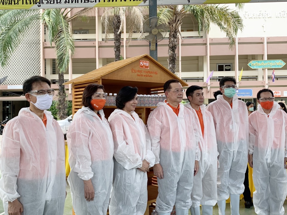 นอกจากนี้ ธนาคารยังได้จัดพิธี Kick Off โครงการ “บ้าน ธอส. ของกินของใช้ปันน้ำใจ เราไม่ทิ้งกัน” เพื่อยกระดับชุมชนเสริมสร้างวัฒนธรรมแบ่งปันสุข คลายทุกข์ให้คนไทยช่วยเหลือดูแลกันและกัน ภายใต้หลักการของการ เสริมสร้างวัฒนธรรมให้คนไทยดูแล ช่วยเหลือ แบ่งปัน มีวินัย ไม่แย่งของกัน มีความน่ารักแบบคนไทย มีวินัยแบบ ญี่ปุ่น ด้วยการจัดทำ “บ้าน ธอส.” สำหรับใส่ของกินของใช้ เพื่อให้ผู้ที่เดือดร้อนและได้รับผลกระทบจากโควิด-19 จัดกิจกรรม CSR ฉีดพ่นน้ำยาฆ่าเชื้อให้แก่โรงเรียนในเขตห้วยขวาง 4 โรงเรียน 9 ศูนย์พัฒนาเด็กเล็ก เพื่อป้องกันการแพร่ระบาดของโควิด-19 เพื่อความปลอดภัยของเด็ก ครู ผู้ปกครอง และบุคลากรทางการศึกษา ดำเนินการตามมาตรการของกระทรวงสาธารณสุขอย่างเคร่งครัดในวันที่ 1 กรกฎาคม 2563 แบ่งปันไปใช้-บริโภค โดยจะทยอยติดตั้งที่บริเวณหน้าสาขาของธนาคารทั่วประเทศ 138 หลัง ภายในเดือนมิถุนายน 2563 รวมถึงบริเวณหน้าโรงเรียนจันทร์หุ่นบำเพ็ญ ซึ่งถือเป็นจุดที่ใกล้กับแหล่งชุมชนที่มีผู้ได้รับผลกระทบจากการระบาดของโควิด-19 และพร้อมเปิดโอกาสให้ชุมชนและเด็กนักเรียนใกล้เคียงสาขาต่าง ๆ ทั่วประเทศได้มีส่วนร่วมกับโครงการดังกล่าวมากขึ้นต่อไป
