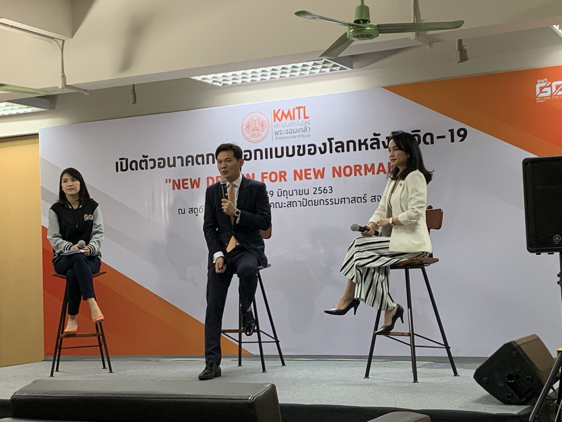 ด้าน ผศ.ดร.อันธิกา สวัสดิ์ศรี คณบดีคณะสถาปัตยกรรมศาสตร์ สจล. กล่าวว่า คณะสถาปัตยกรรมศาสตร์ ได้เตรียมนำแนวคิดดีไซน์ดิสรัปชันมาประยุกต์ใช้ในงานออกแบบในพื้นที่ความเสี่ยงสูงต่อการติดเชื้อ และพื้นที่สาธารณะที่มีผู้ใช้งานจำนวนมาก หลังมาตรการคลายล็อกดาวน์เฟส 5 ซึ่งมีแนวโน้มที่ผู้คนจะเริ่มกลับมาใช้ชีวิตตามวิถีชีวิตปกติรูปแบบใหม่มากยิ่งขึ้น ตัวอย่างพื้นที่สาธารณะที่คณะสถาปัตยกรรมศาสตร์ สจล. กำลังเดินหน้าพัฒนางานออกแบบเพื่อยกระดับการอยู่ร่วมกันอย่างปลอดภัย ได้แก่ งานออกแบบในโรงเรียน ต้องคำนึงถึงการมีปฏิสัมพันธ์ระหว่างกลุ่ม ที่ต้องรักษาระยะห่าง โดยใช้ระบบแบ่งกลุ่มจำนวนนักเรียนต่อห้อง การใช้ที่กั้นระหว่างโต๊ะเรียน โต๊ะอาหาร เป็นต้น งานออกแบบในโรงพยาบาล ต้องให้ความสำคัญกับการคัดกรองผู้มีความเสี่ยงติดเชื้อโควิด-19 รวมทั้งโรคติดต่ออื่นๆ โดยการตั้งจุดคัดกรองตั้งแต่ก่อนเข้าอาคาร ซึ่งอาจใช้ระบบการออกแบบห้องตรวจคัดกรองแบบความดันบวกเพื่อให้แพทย์ใช้ตรวจคัดกรองผู้มีความเสี่ยงติดเชื้ออย่างปลอดภัย การติดตั้งระบบกรองอากาศในบริเวณที่แพทย์ต้องทำหัตถการให้แก่ผู้มีความเสี่ยงติดเชื้อ เป็นต้น