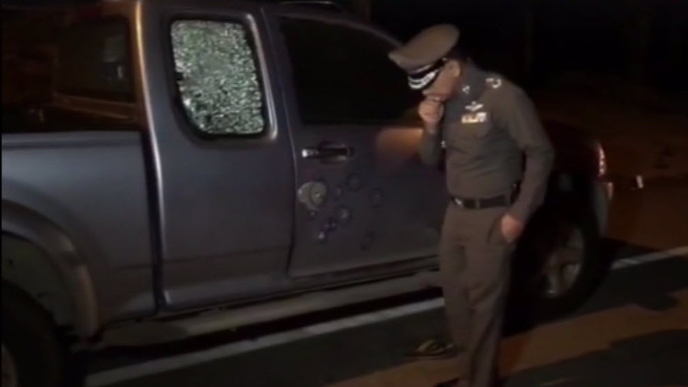 ส่วนคนร้ายเจ้าหน้าที่เร่งไล่ล่าติดตาม ประสานเรียกกำลังเสริมนับ 100 นาย ปิดล้อมพื้นที่เอาไว้ พบรอยเลือดและหายไปบริเวณบ่อดินร้าง ห่างจากที่เกิดเหตุประมาณ 1 กิโลเมตร ตำรวจจึงนำกำลังมาปิดล้อมพื้นที่ไว้จนสว่าง จึงเข้าเคลียร์พื้นที่ และประสานเฮลิคอปเตอร์มาบินค้นหาทางอากาศด้วย. – สำนักข่าวไทย