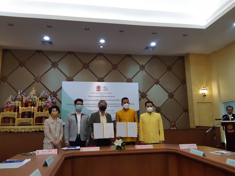 นพ.สุภกร บัวสาย ผู้จัดการกองทุนเพื่อความเสมอภาคการศึกษา(กสศ.) และนายณรงค์ ทรงอารมณ์ ผู้อำนวยการสำนักงานพระพุทธศาสนาแห่งชาติ (พศ.) ร่วมลงนาม(MOU) บันทึกข้อตกลงความร่วมมือ พศ.และกสศ.เพื่อดำเนินงานโครงการทดลอง เพื่อพัฒนาต้นแบบการจัดสรรเงินอุดหนุนนักเรียนยากจนพิเศษแบบมีเงื่อนไขและพัฒนาคุณภาพครู ในโรงเรียนพระปริยัติธรรม แผนกสามัญศึกษา