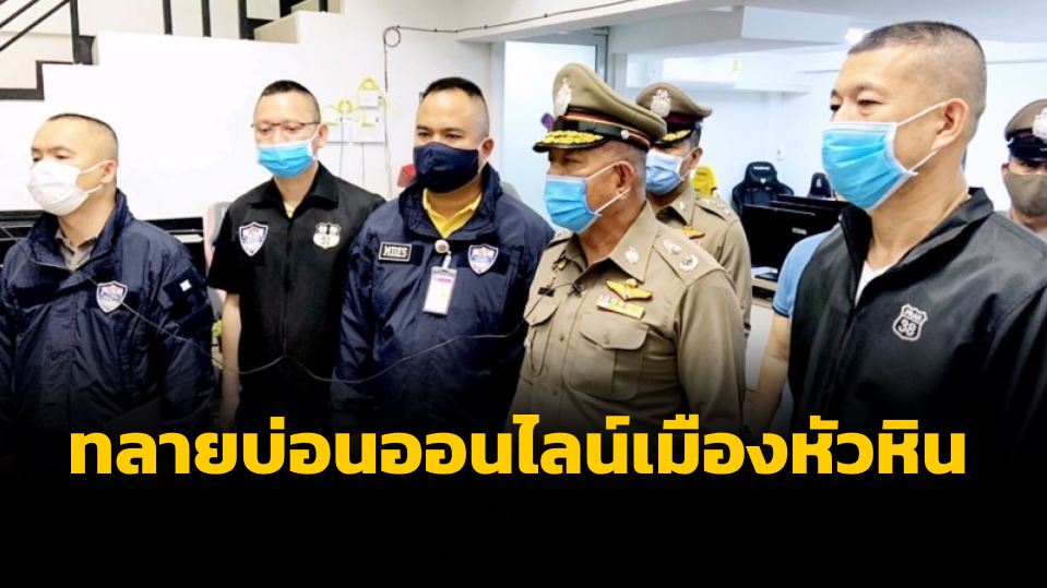 พล.ต.ต.พันธนะ นุชนารถ ผบก.ข่าวกรองยาเสพติด กองบัญชาการปราบปรามยาเสพติด (บก.ขส.บช.ปส.) ในฐานะหัวหน้าชุดเทคนิคและสืบสวน 2 ศูนย์ปราบปรามอาชญากรรมเทคโนโลยีสารสนเทศสำนักงานตำรวจแห่งชาติ (ศปอส.ตร.) พล.ต.ต.สุรศักดิ์ สุขแสวง ผู้บังคับการตำรวจภูธรจังหวัดประจวบคีรีขันธ์ และ พ.ต.อ.ไพทูล พรมเขียน ผกก.สภ.หัวหิน พร้อมชุดเจ้าหน้าที่นำหมายศาลจังหวัดหัวหิน เข้าตรวจค้น 2 เป้าหมาย ในพื้นที่บ้านสมอโพรง เขตเทศบาลเมืองหัวหิน เมื่อคืนที่ผ่านมา (1 ก.ค.) หลังสืบทราบว่าลักลอบเล่นพนันออนไลน์ และจับกุมผู้ต้องหาได้ 9 คน ยึดของกลางคอมพิวเตอร์ตั้งโต๊ะ 66 เครื่อง โทรศัพท์มือถือ และอุปกรณ์เทคโนโลยีหลายรายการ