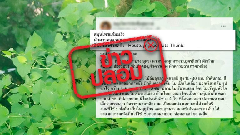 สถาบันมะเร็งแห่งชาติ4 ก.ค..-สถาบันมะเร็งแห่งชาติเตือนข่าวปลอม อย่าแชร์! ผักคาวทองรักษาโรคมะเร็ง