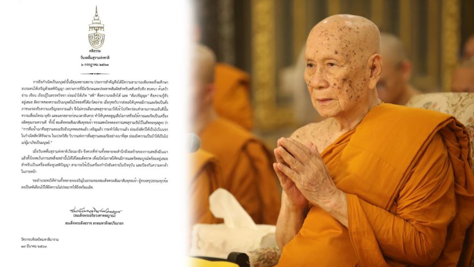 กทม.6ก.ค.-สมเด็จพระสังฆราช ประทานพระคติธรรม เนื่องในวันงดดื่มสุราแห่งชาติ “งดเว้น เสพสิ่งมึนเมา เพื่อเปิดโอกาสให้ตนมีกายและจิตสมบูรณ์ เพิ่มพูนสติปัญญา”