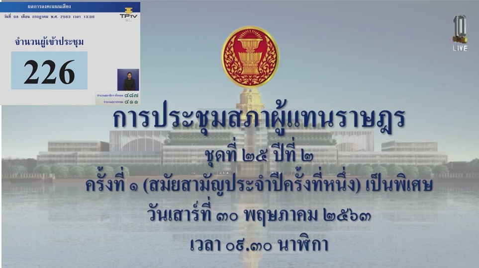 ด้านนายชวน หลีกภัย ประธานสภาผู้แทนราษฎรแจ้งสมาชิกที่จะไม่ร่วมแสดงตนว่าให้นั่งประจำที่ อย่ายืนเกะกะ อย่างไรก็ตาม เมื่อเปิดให้แสดงตน มีส.ส.เข้าร่วมประชุมจำนวน 226 คนและแสดงตนเพิ่มอีก 231 คน ซึ่งจะต้องมีสมาชิกเป็นองค์ประชุมไม่น้อยกว่า 244 คน จึงไม่ครบองค์ประชุม ทำให้ประธานสั่งปิดการประชุมทันที ซึ่งถือเป็นสภาล่มครั้งแรกในสมัยการประชุมนี้