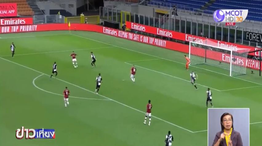 ฟุตบอลกัลโช เซเรีย อา อิตาลี นัดที่ 31 “ปีศาจแดงดำ” เอซี มิลาน เปิดซาน ซีโร พบกับ “ม้าลาย” ยูเวนตุส จ่าฝูง ครึ่งแรกเสมอกัน 0-0 ครึ่งหลังเริ่มเกมเพียง 2 นาที อาเดรียง ราบิโอต์ เลี้ยงเดี่ยวจากแดนตัวเองจี้ไปหน้ากรอบเขตโทษ ก่อนซัดด้วยซ้ายเข้าไปอย่างสุดสวยให้ ยูเว่ ขึ้นนำก่อน 1-0 นาทีที่ 53 ฮวน กวาดราโด วางบอลยาวข้ามหัวสองกองหลังเจ้าถิ่นให้ คริสเตียโน โรนัลโด ซัดด้วยซ้ายเข้าไปให้ ยูเว่ นำห่าง 2-0 นาทีที่ 62 เลโอนาร์โด้ โบนุชชี ไปทำแฮนด์บอลในเขตโทษ หลังจากที่ผู้ตัดสินไปเช็ก VAR ก่อนเป่าให้เจ้าถิ่นได้จุดโทษ และเป็น ซลาตัน อิบราฮิโมวิช ที่ซัดเข้าไปไม่พลาดให้มิลานไล่ขึ้นมาเป็น 1-2 นาทีที่ 66 ฟร้องค์ เกสซีเย ทำชิ่งกับ อิบราฮิโมวิช ก่อนซัดด้วยขวาเข้าไปตีเสมอ 2-2 นาทีถัดมา ราฟาเอล เลเอา ตามไปเก็บบอลก่อนซัดไปแฉลบขา รูกานี เข้าไปให้เจ้าถิ่นพลิกขึ้นนำ 3-2 นาทีที่ 80 อเล็กซ์ ซานโดร จ่ายขวางสนามไม่ดีไปเข้าทาง โบนาเวนตูรา ที่เปิดต่อให้ อันเต้ เรบิช ตวัดเต็มข้อเข้าไปช่วยให้ มิลาน พลิกกลับมาเอาชนะไปได้ 4-2 มี 49 คะแนน ขยับขึ้นไปรั้งอันดับ 5 ส่วนยูเวนตุส มี 75 คะแนน นำลาซิโอ 7 คะแนน
