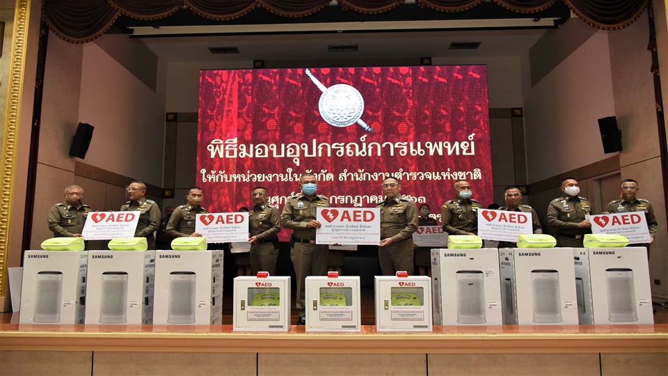 พล.ต.อ. จักรทิพย์ ชัยจินดา ผบ.ตร.เป็นประธานในพิธีมอบอุปกรณ์ทางการแพทย์ให้แก่โรงพยาบาล และกองบัญชาการต่าง ๆ ทั่วประเทศ ในการสนับสนุนภารกิจด้านการรักษาพยาบาลผู้ป่วย หรือผู้ประสบเหตุ มูลค่ารวมกว่า 5,917,500 บาท ซึ่งประกอบด้วย เครื่องกระตุกหัวใจไฟฟ้าชนิดอัตโนมัติ (AED) จำนวน 40 ชุด