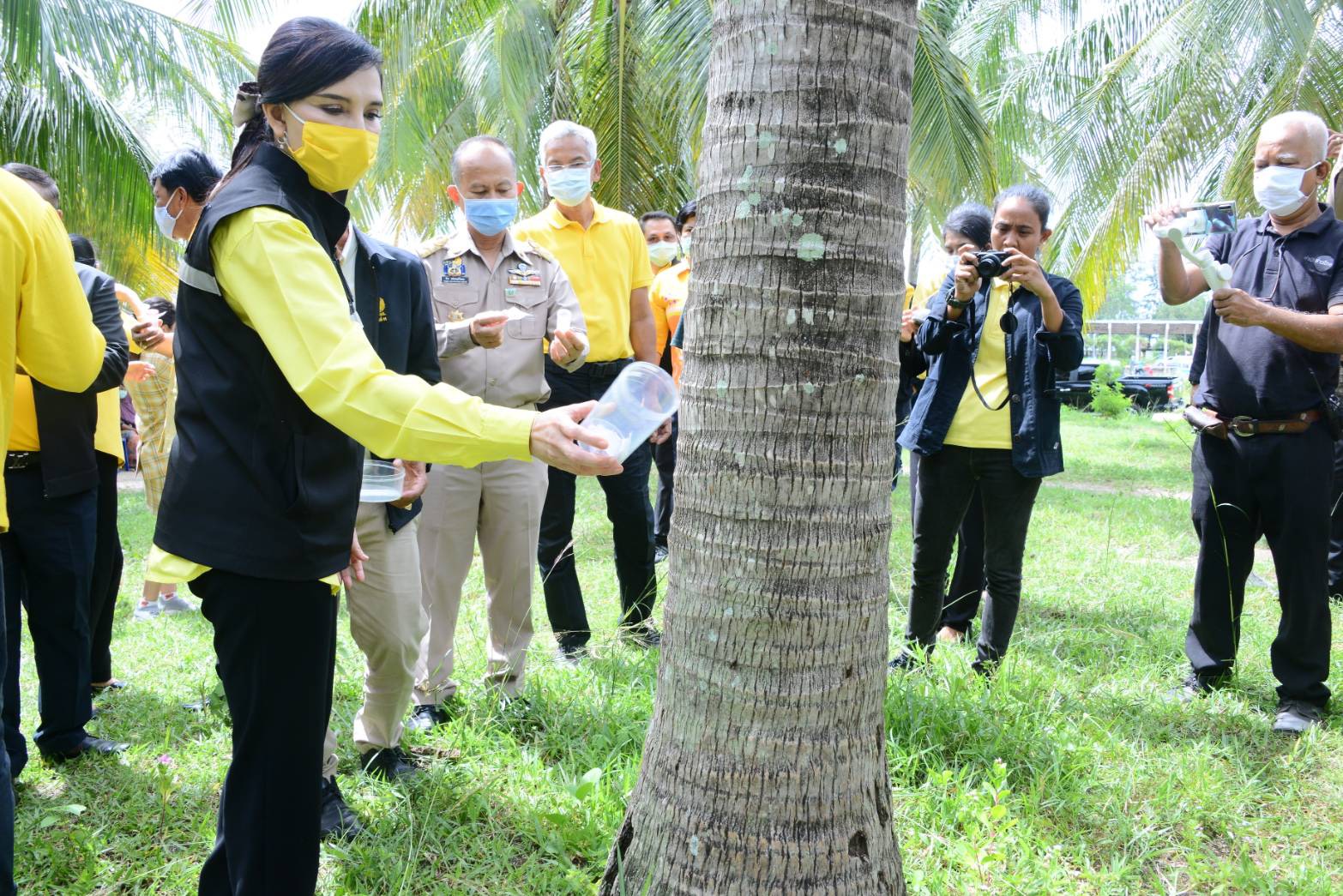 จากนั้นได้มอบต้นพันธุ์มะพร้าวให้เกษตรกร คือ พันธุ์ใหญ่เกาะพงันหรือเพชรพงันซึ่งเป็นพืชสิ่งบ่งชี้ทางภูมิศาสตร์ (GI) ผลทรงกลมรียาว เปลือกและเส้นในมีความเหนียว กะลาสีน้ำตาลแก่ เนื้อมะพร้าวขาวใสและแน่น เนื้อเป็น 2 ชั้น รสชาติหวานมัน ไม่มีกลิ่นหืน มีปริมาณความเข้มข้นของกะทิ และปริมาณน้ำมันสูงซึ่งการเพาะปลูกมะพร้าวบนเกาะพงันมีมานานกว่าสองร้อยปี ลักษณะพิเศษของมะพร้าวพันธุ์นี้เกิดจากสภาพภูมิอากาศที่อยู่บนเกาะและพื้นที่เพาะปลูกส่วนใหญ่เป็นดินปนทราย นอกจากนี้ยังมีพันธุ์ลูกผสมที่พัฒนาขึ้นใหม่อีกหลายพันธุ์