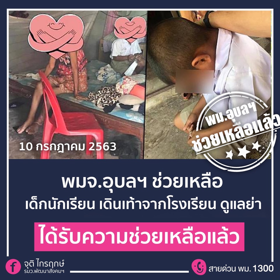 พม. 11 ก.ค.-เจ้าหน้าที่ พม.ในพื้นที่ จ.อุบลราชธานี ลงพื้นที่ช่วยเหลือเด็กนักเรียนเดินเท้ากลับไปดูแลย่าแล้ว หลังปรากฏเรื่องราวสะเทือนใจผ่านโลกออนไลน์
