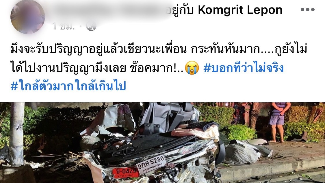 กทม.12 ก.ค.-ครอบครัวและเพื่อนที่รู้ข่าวอุบัติเหตุสลด 3 ศพ สาหัส 2 ท้องที่ สน.บางพลัด ต่างโพสต์แสดงความอาลัย
