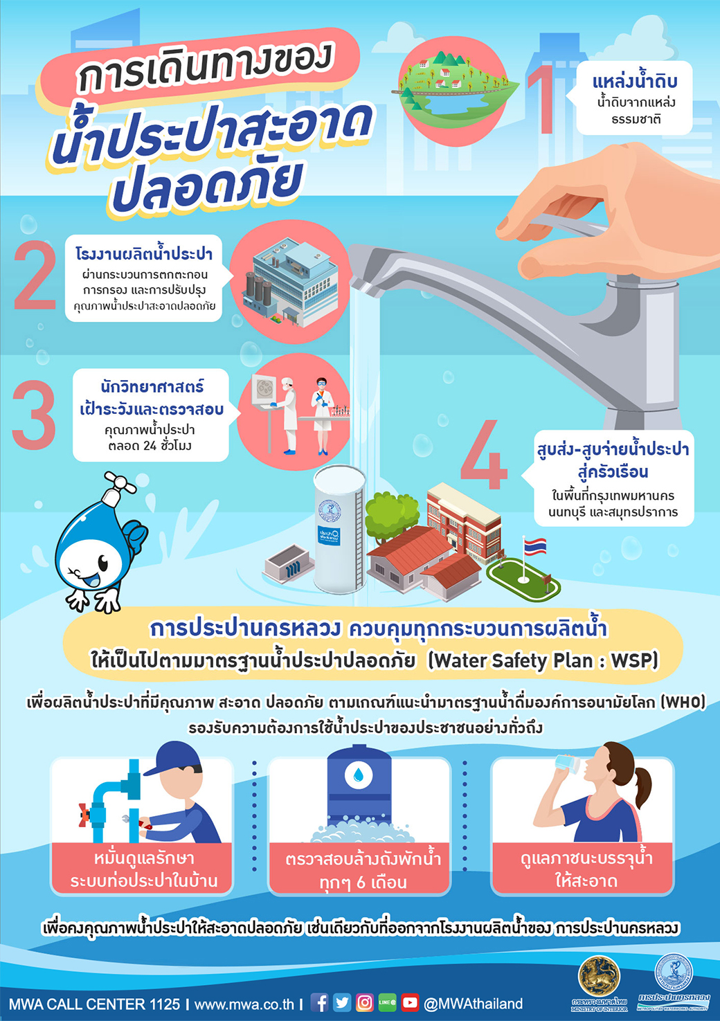 กปน.ขอให้ผู้ใช้น้ำหมั่นตรวจสอบดูแลรักษาระบบท่อประปาในบ้านของตนเอง หมั่นตรวจสอบ ล้างถังพักน้ำทุก ๆ 6 เดือน เพื่อคงคุณภาพน้ำประปาให้สะอาดปลอดภัย เช่นเดียวกับที่ออกจากโรงงานผลิตน้ำของ กปน. – สำนักข่าวไทย
