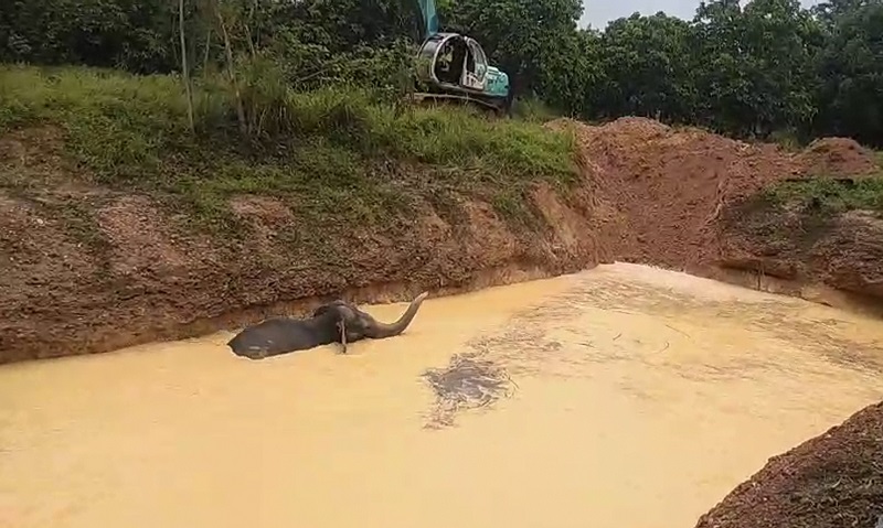 เมื่อเวลาประมาณ 14.00 น. (13 ก.ค.) นายสุริยากมล ไวยหงษ์ ปลัดฝ่ายความมั่นคงอำเภอท่าตะเกียบ จ.ฉะเชิงเทรา ได้รับแจ้งจากชาวบ้านพบช้างตะเกียกตะกายอยู่นานนับชั่วโมงอยู่ในบ่อน้ำกลางสวนผลไม้หมู่ 12 บ้านเนินกระบก ต.ท่าตะเกียบ จึงนำชุดกองร้อยอาสาท่าตะเกียบและประสานกับนายเอนก วงษ์ศา หัวหน้าชุดปฏิบัติการเฝ้าระวังช้างป่าเขาอ่างฤาไน ประจำอำเภอท่าตะเกียบ รวมทั้ง ร.ท.สุระ โสรักนิษฐ์ รองผู้บังคับการกองร้อยทหารพรานที่ 1306 นำกำลังเข้าพื้นที่เพื่อให้การช่วยเหลือพบว่าเป็นลูกช้างป่า อายุประมาณ 5 ปี ส่งเสียงร้องและพยายามชูงวงให้พ้นน้ำ