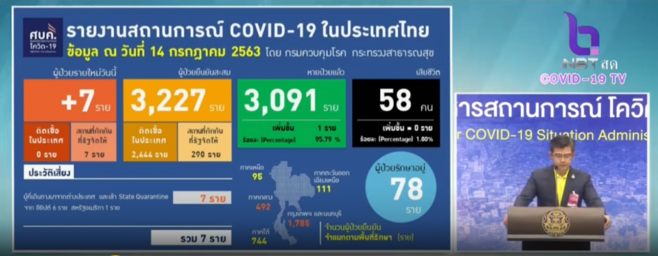 BANGKOK, July 14 (TNA) – Thailand reported seven new imported cases of Covid-19, raising the total cases to 3,227.
