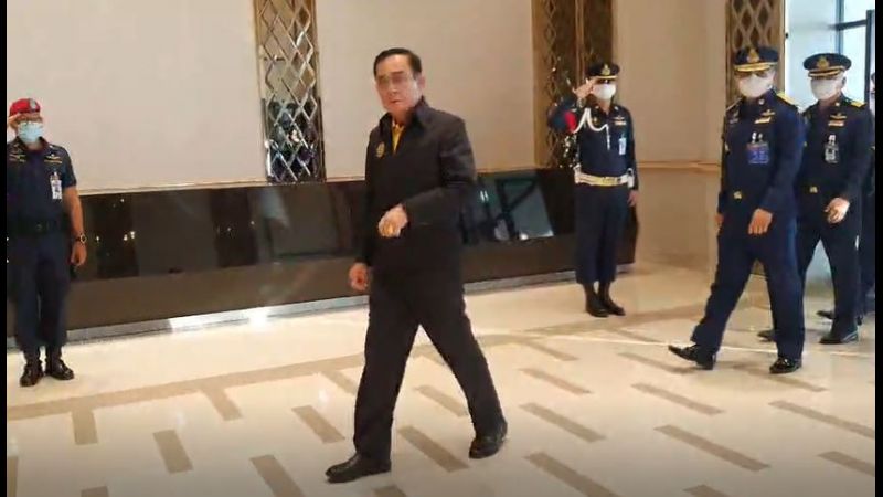 In the afternoon, the prime minister is scheduled to visit the Baan Nongyai Border Patrol Police School to observe teaching arrangements under the Covid-19 prevention system.