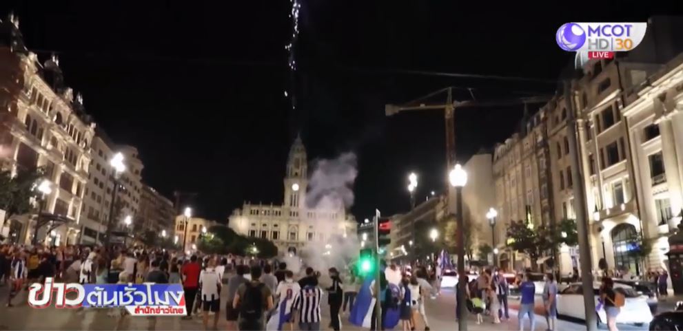 แฟนบอลของปอร์โตออกมาเฉลิมฉลองแชมป์สมัยที่ 29 บนท้องถนนจัตุรัสริเบอร์ดาเด ในใจกลางเมืองปอร์โต ประเทศโปรตุเกส หลังจากทีมปอร์โตคว้าแชมป์ฟุตบอลปรีไมราลีกา ด้วยการเปิดบ้านชนะ สปอร์ติง ลิสบอน 2-0 ส่งผลให้ทำคะแนนทิ้งห่าง ทีมอันดับ 2 เบนฟิกา ขาด แม้จะเหลือโปรแกรมอีก 2 นัดก็ตาม ซึ่งรัฐบาลโปรตุเกสห้ามแฟนบอลเข้าชมเกมในสนาม เพื่อป้องกันการแพร่ระบาดของเชื้อโควิด-19