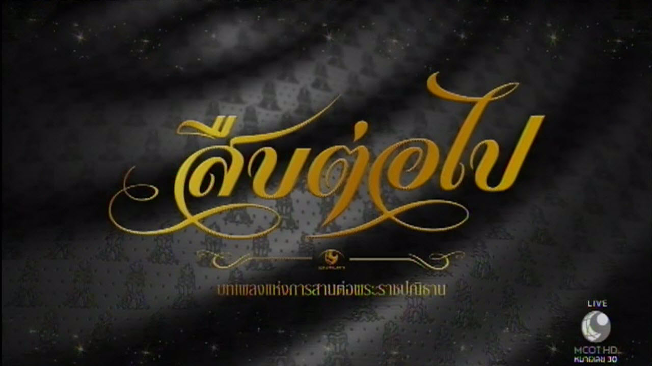 นี่คือท่วงทำนองบางส่วนจากบทเพลงพิเศษ “สืบต่อไป” ที่ อสมท จัดทำขึ้น เพื่อน้อมรำลึกถึงพระมหากรุณาธิคุณของในหลวง รัชกาลที่ 9 ซึ่ง “หนึ่ง-จักรวาร เสาธงยุติธรรม” มิวสิกไดเรกเตอร์แถวหน้าของเมืองไทย เป็นผู้ประพันธ์ทำนอง โดย “ศรัณย์ วงศ์น้อย” หรือ แม็ค วงอะแคปเปล่า เซเว่น ประพันธ์เนื้อร้อง ถ่ายทอดบทเพลงด้วยหัวใจโดย 9 ศิลปินคุณภาพชื่อดัง คือ เสาวลักษณ์ ลีละบุตร, นิโคล เทริโอ, รัดเกล้า อามระดิษ, นนทิยา จิวบางป่า, วสุ แสงสิงแก้ว, ต้น นรารักษ์, เอ๊ะ จิรากร, แคนดี้ รากแก่น และธีรภัทร์ สัจจกุล พร้อมด้วยผู้บริหาร อสมท นักร้องจากหลากหลายค่าย ดีเจ พิธีกร ศิลปินในสังกัด อสมท และผู้ประกาศข่าวสำนักข่าวไทย