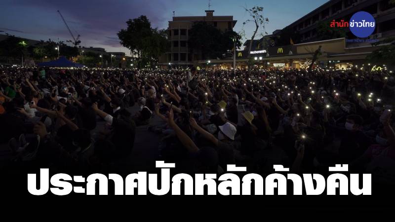 กรุงเทพฯ 18 ก.ค.-บรรยากาศการชุมนุมของกลุ่มสหภาพนักเรียนนิสิตนักศึกษาแห่งประเทศไทย และกลุ่มเยาวชน “ปลดแอก” ที่รวมตัวจัดกิจกรรมเชิงสัญลักษณ์ เพื่อแสดงออกแนวคิดทางการเมือง บริเวณอนุสาวรีย์ประชาธิปไตย ล่าสุดพบว่าแกนนำนักศึกษา ยังคงสลับกันขึ้นเวทีปราศรัยอย่างต่อเนื่อง และได้ประกาศปักหลักค้างคืนบริเวณอนุสาวรีย์ประชาธิปไตย ถนนราชดำเนิน