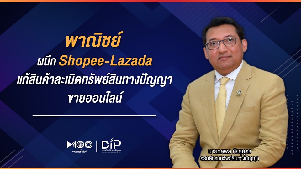 กรุงเทพฯ 20 ก.ค. – กรมทรัพย์สินทางปัญญาเดินหน้าแก้ปัญหาการขายสินค้าละเมิดทรัพย์สินทางปัญญาทางออนไลน์ เตรียมร่วมมือกับช้อปปี้-ลาซาด้า คุมเข้มผู้ค้าในระบบไม่ให้ขายสินค้าละเมิด
