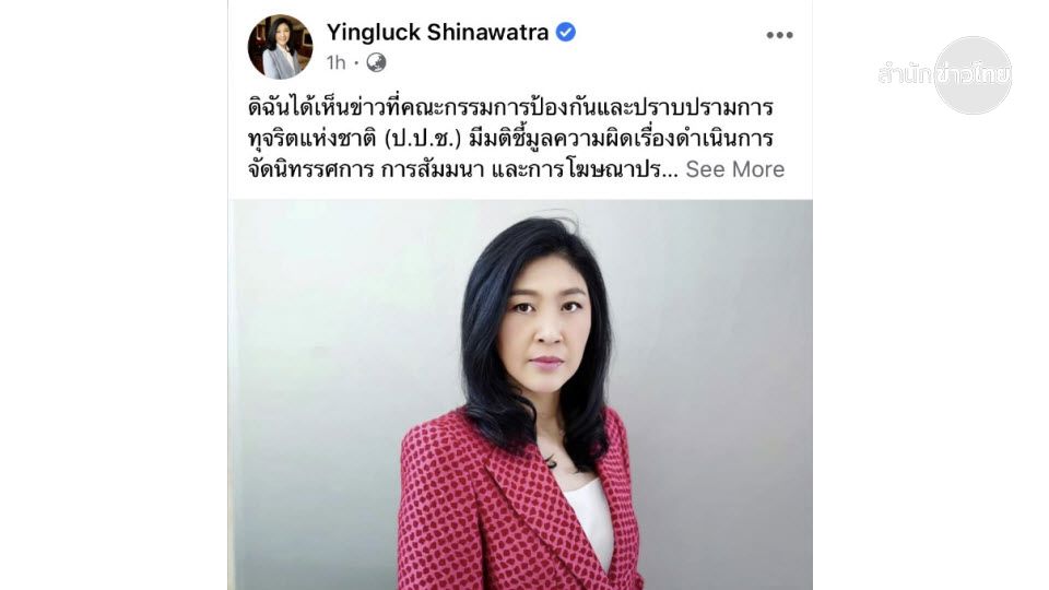กรุงเทพฯ 23 ก.ค.- “ยิ่งลักษณ์” โพสเฟซบุ๊ก หลังถูก ป.ป.ช.ชี้มูลความผิด 2 คดี ติดต่อกันในเวลาไม่ถึง 1 เดือน ชี้ เป็นการเร่งรัดกับคดีของฝ่ายที่เห็นต่างรัฐบาล
