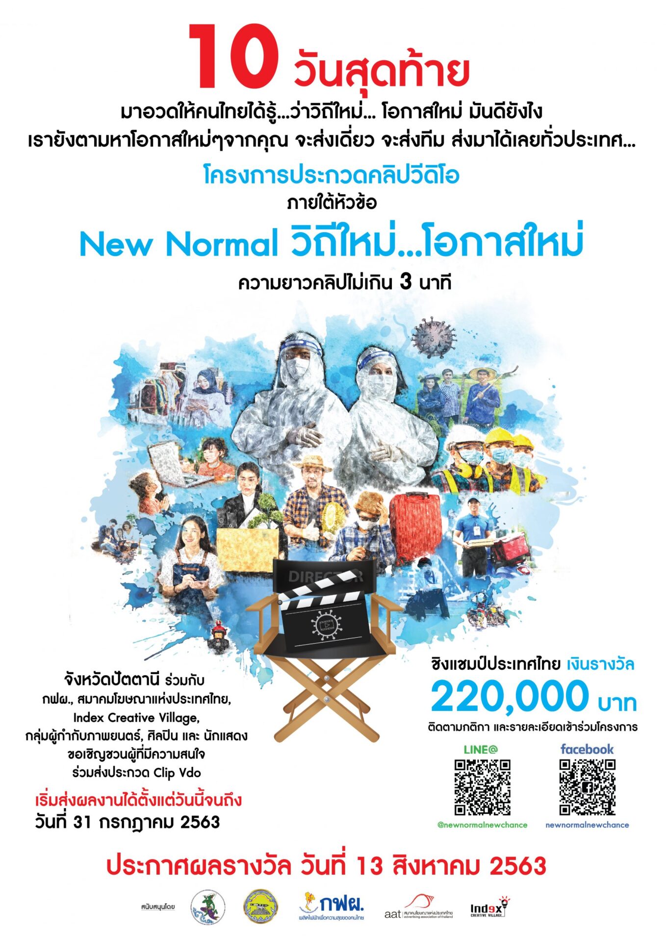 นางฤดีมาส ปางพุฒิพงศ์ ผู้อำนวยการฝ่ายสื่อสารและประชาสัมพันธ์องค์การ การไฟฟ้าฝ่ายผลิตแห่งประเทศไทย (กฟผ.) เปิดเผยว่า กฟผ. ได้ผนึกกำลังกับจังหวัดปัตตานี และภาคเอกชน ได้แก่ สมาคมโฆษณาแห่งประเทศไทย บริษัท อินเด็กซ์ครีเอทีฟ วิลเลจ จำกัด (มหาชน) กลุ่มผู้กำกับภาพยนตร์ ศิลปิน และนักแสดง จัดประกวดวิดีโอคลิป ภายใต้หัวข้อ “New Normal วิถีใหม่… โอกาสใหม่” ซึ่งเป็นส่วนหนึ่งในโครงการ “หยุดได้ไว เริ่มใหม่ได้เร็ว : Stop Covid Fast Restart Faster” ของ กฟผ. ที่เปิดพื้นที่ให้คนไทยทั่วประเทศ ได้แสดงพลังความคิดสร้างสรรค์ ร่วมให้กำลังใจและปลุกพลังคนไทยก้าวผ่านวิกฤติโควิด – 19 โดยใช้ประโยชน์และสร้างโอกาสจากวิถีชีวิตใหม่ ผ่านวิดีโอสั้น ความยาวไม่เกิน 3 นาที