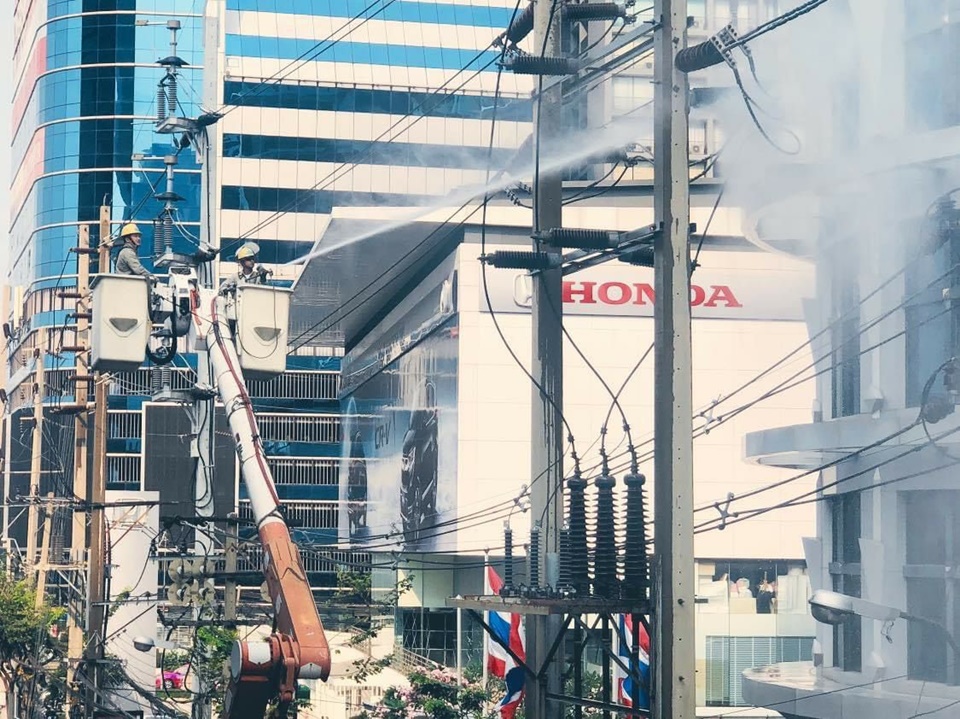 กรุงเทพฯ 23 ก.ค. – นางสาวผาสุก สัมปุณณะโชติ ผู้อำนวยการฝ่ายสื่อสารองค์กร การไฟฟ้านครหลวง หรือ MEA กล่าวว่า MEA ในฐานะหน่วยงานที่ดูแลระบบจำหน่ายในพื้นที่กรุงเทพมหานคร นนทบุรี และสมุทรปราการ ที่มีความเชี่ยวชาญด้านระบบไฟฟ้า มุ่งเน้นการเพิ่มประสิทธิภาพพลังงานเพื่อวิถีชีวิตเมืองมหานคร มีการเตรียมความพร้อมระบบจำหน่ายไฟฟ้าตามแผนงานการป้องกันและบำรุงรักษาอุปกรณ์ที่สำคัญในระบบจ่ายกระแสไฟฟ้าอย่างต่อเนื่อง โดยเฉพาะอย่างยิ่งช่วงฤดูฝนโดยการฉีดน้ำแรงดันสูงล้างอุปกรณ์ลูกถ้วยฉนวนไฟฟ้า (Insulator) ซึ่งเป็นอุปกรณ์ที่ใช้รองรับสายไฟฟ้าและเป็นฉนวนไฟฟ้าในระบบไฟฟ้าแรงสูง หากมีฝุ่นเกาะบริเวณพื้นผิวจำนวนมากอาจทำให้ไฟฟ้าช็อตและเกิดความร้อนจนลูกถ้วยฉนวนไฟฟ้าเกิดความเสียหาย ตลอดจนอาจส่งผลกระทบต่อความมั่นคงทางระบบไฟฟ้าทำให้ไฟฟ้าดับบริเวณกว้างได้ โดย MEA ใช้การทำงาน Hotline ไม่มีการดับไฟทำงาน ทำให้ไม่กระทบต่อผู้ใช้ไฟฟ้า ซึ่งการทำงานในลักษณะดังกล่าวเจ้าหน้าที่ต้องมีความเชี่ยวชาญพร้อมเครื่องมือที่ทันสมัย