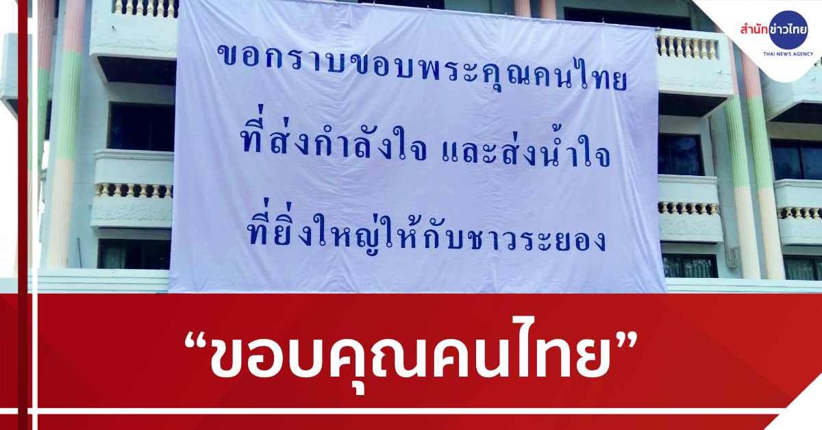 สำนักข่าวไทย 25 ก.ค. 63 – นายก อบต. ตะพง อ.เมือง จ.ระยอง ร่วมกับโรงแรมภาคเอกชน จัดทำป้ายขอบคุณขนาดยักษ์ สูง 2 ชั้นของตัวตึกโรงแรม หรือ ขนาด 6×10 เมตร ติดหน้าโรงแรมริมหาดแม่รำพึง จ.ระยอง ขอบคุณประชาชนคนไทยและสื่อทุกแขนงที่ให้การสนับสนุน จ.ระยองให้ผ่านพ้นวิกฤติโควิด-19 ในช่วง 14 วันที่ผ่านมา