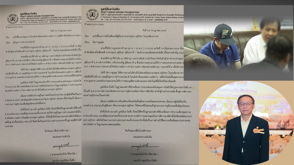 นพ.แท้จริง ศิริพานิช เลขาธิการมูลนิธิเมาไม่ขับ ทำหนังสือถึงอัยการสูงสุดและ ผบ.ตร. เรื่อง ขอให้ชี้แจงการสั่งไม่ฟ้องคดีผู้ต้องหา “วรยุทธ อยู่วิทยา” ในคดีขับรถชนตำรวจเสียชีวิต ในทุกข้อกล่าวหา ซึ่งมูลนิธิเมาไม่ขับในฐานะองค์กรที่ขับเคลื่อนการรณรงค์และสนับสนุนการบังคับใช้กฏหมายเมาไม่ขับมาตั้งแต่ปี 39 มีความสงสัยต่อกระบวนการยุติธรรมต้นทาง ในการฟ้องร้องนำตัวผู้กระทำผิด ขึ้นสู่การพิจารณาของศาลยุติธรรมเป็นอย่างยิ่ง