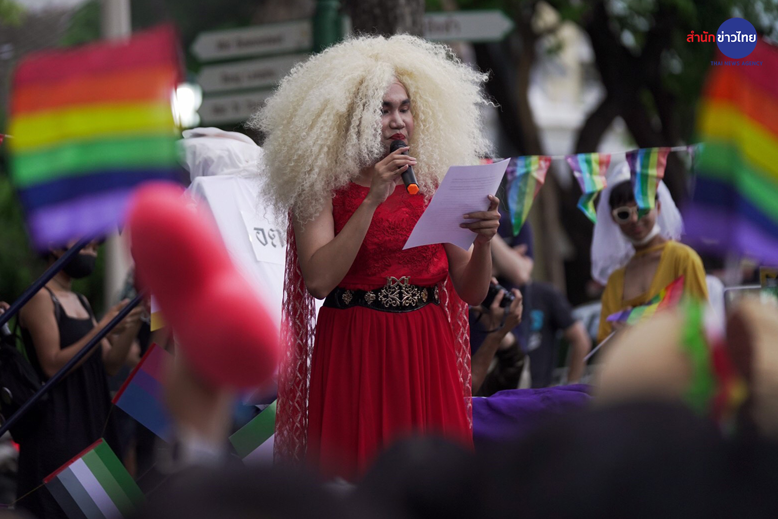 กทม. 25 ก.ค.- ผู้ชุมนุมกลุ่มหลากหลายทางเพศ ในชื่อม็อบไม่มุ้งมิ้งแต่ตุ้งติ้งค่ะรัฐบาล ได้จัดกิจกรรมทางการเมืองบริเวณอนุสาวรีย์ประชาธิปไตย ข้างโรงเรียนสตรีวิทยา เพื่อติดตามความคืบหน้าข้อเรียกร้อง 3 ข้อ ที่ผู้ชุมนุมกลุ่มเยาวชนปลดแอก ได้เสนอแก่รัฐบาลหลังผ่านไป 1 สัปดาห์