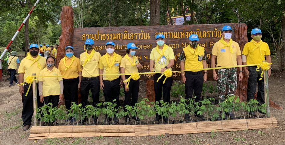 เมื่อเวลา 13.30 น. (29 ก.ค.) นายนิพนธ์ จำนงสิริศักดิ์ ผู้อำนวยการสำนักบริหารพื้นที่อนุรักษ์ที่ 3 (บ้านโป่ง) กรมอุทยานแห่งชาติ สัตว์ป่าและพันธุ์พืช นางคณิสรา เชฐบัณฑิตย์ ผู้อำนวยการส่วนอุทยานแห่งชาติ นายปรยุษณ์ ไวว่อง หัวหน้าอุทยานแห่งชาติเอราวัณ พร้อมเจ้าหน้าที่จากสำนักบริหารพื้นอนุรักษ์ที่ 3 (บ้านโป่ง) และภาคประชาชนร่วมกิจกรรม “โครงการปลูกป่า และป้องกันไฟป่า” ในเขตอุทยานแห่งชาติเอราวัณ บริเวณบ้านท่ากะทิ หมู่ 6 ต.ช่องสะเดา อ.เมือง จ.กาญจนบุรี เพื่อแสดงความจงรักภักดี และสำนึกในพระมหากรุณาธิคุณพระบาทสมเด็จพระวชิรเกล้าเจ้าอยู่หัว