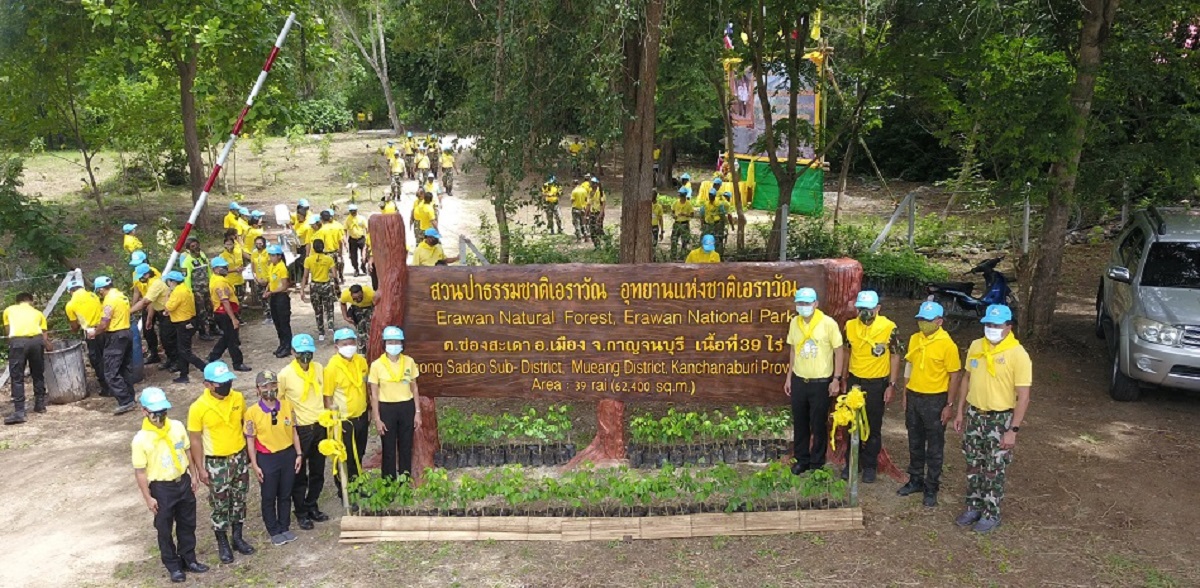 กาญจนบุรี 29 ก.ค.- กรมอุทยานฯ ปลูกป่าเฉลิมพระเกียรติในพื้นที่บ้านท่ากะทิ เมืองกาญจนบุรี เขตอุทยานฯ เอราวัณ สร้างความอุดมสมบูรณ์ทางธรรมชาติ หลังยึดคืนพื้นที่ 39 ไร่ จากนายทุนบุกรุก