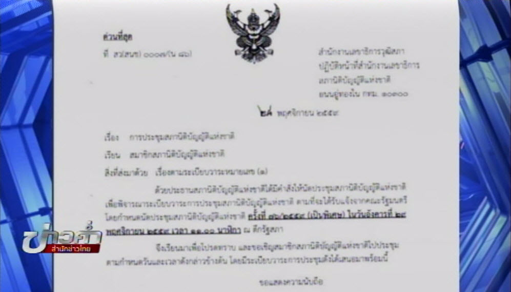 กรุงเทพฯ 28 พ.ย.-เลขาธิการสำนักงานวุฒิสภาแจ้งทางการนัดประชุม สนช.วาระพิเศษในวันพรุ่งนี้ เวลา 11.00 น.