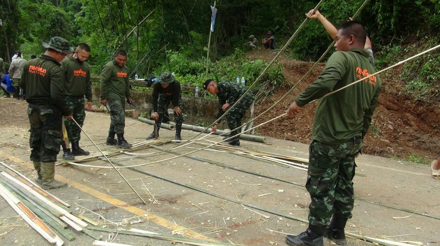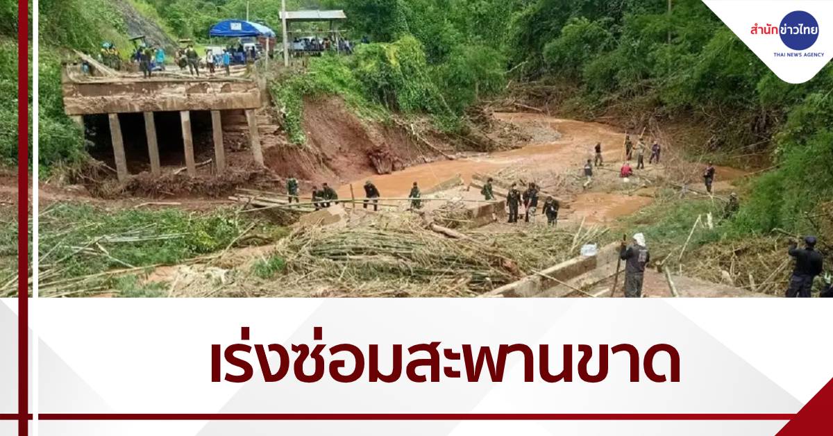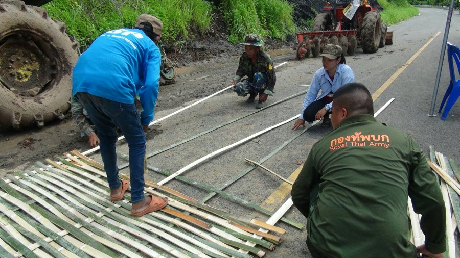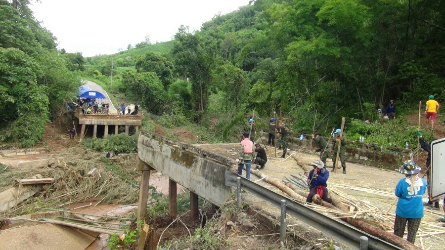 เพื่อให้ชาวบ้านเดินทางไปมาได้ ระหว่างรอสะพานเบลีย์เป็นสะพานเหล็กจากศูนย์ป้องกันและบรรเทาสาธารณภัย (ปภ.) เขต 15 เชียงราย มาติดตั้ง